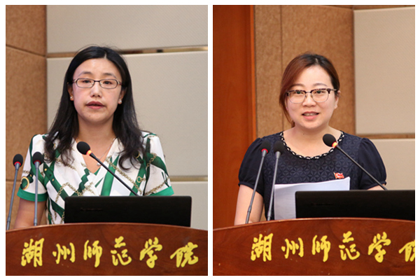 社会发展与管理学院党委书记杨洁和教师教育学院学生第三党支部书记田儿作交流发言。杨洁结合全省高校院系党组织书记“两学一做”学习教育示范班的培训学习和工作经验,围绕基层党组织书记“如何在当前形势下做好党建工作”、“如何开展‘两学一做’学习教育”等方面谈了自己的感悟与体会。田儿结合自己多年的党务和支部书记工作经历,分享了在提升支部书记业务能力、加强党支部建设等方面有效的经验和做法。