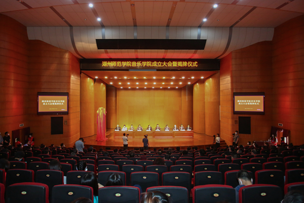 4月27日下午,我校举行音乐学院成立大会暨揭牌仪式。全体校领导出席,党校办、组织部、宣传部、人事处、学生处、学科建设处、教务处、人文社科处、社会合作处、团委等部门负责人,各二级学院党委(总支)书记、院长,音乐学院前身音乐系所在的艺术学院其他班子成员,音乐学院在湖全体教师、学生代表参加了成立大会。应疫情防控要求,音乐学院非在湖教师、非在现场的其他全体学生、离退休教职工、校友、各社会合作与地方服务单位、兄弟高校同行师友等在线观看了实况直播。大会由校长蒋云良主持。