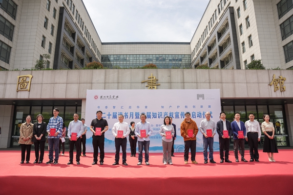 4月16日下午,我校第二十届读书月暨首届知识产权宣传月活动开幕。副校长舒志定,浙江省市场监督管理局(知识产权局)知识产权促进处处长林敏、三级调研员沈方英,湖州市市场监督管理局(知识产权局)党委副书记、副局长沈莉出席开幕式。湖州市市场监督管理局(知识产权局)知识产权发展处负责人,吴兴区市场监督管理局(知识产权局)相关负责人,知识产权联盟合作签约代表,国家知识产权信息公共服务网点受聘专家,校图书情报工作委员会成员,校党委宣传部、学生处、教务处、科技处、人文社科处、团委、沈家本法学院等部门相关负责人,以及各二级学院师生代表200余人参加了开幕式。